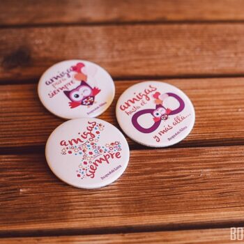Las amigas siempre son una parte importante en tu vida y como no, en tu boda. Tu despedida puede ser un buen momento para agradecerle todo lo que hacen por ti, lo bien que se han portado desde que se enteraron que llegaba tu boda. Un detalle útil y personalizado. Tu eliges la trasera entre alfiler, imán, espejo o abridor.