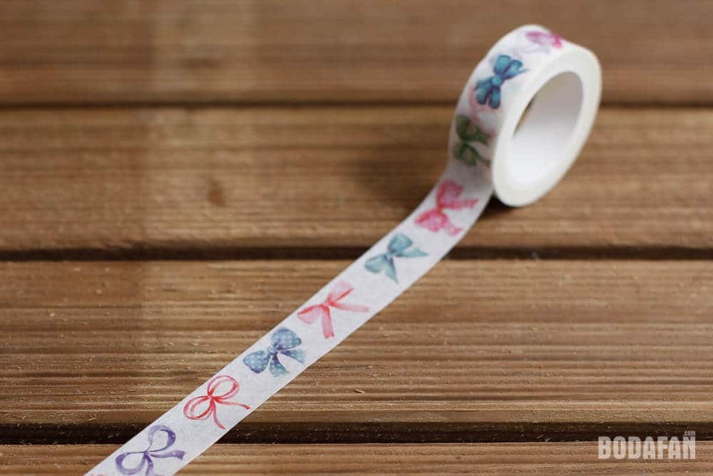 Cinta decorativa con motivos de lazos, ideal para pegar fotografías en tu álbum o libro de firmas de tu boda, para decorar todo lo que te propongas. También llamado celo japonés o masking tape.